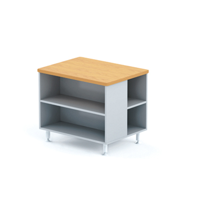 Используется ламинированная плита толщиной 28 мм и 22 мм стандарта эмиссии Е1. Торцы плиты облицованы прочной профилированной противоударной кромкой производства Германии. Цвет кромки соответствует цвету ДСП. Применяется фурнитура ведущих европейских производителей, в том числе регулируемые по высоте опоры столов и шкафов.